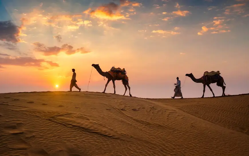 Breakfast at Hotel. Full day sightseeing of Jaisalmer. Today we visit the old town of Jaisalmer & visit Jaisalmer Fort, Palaces & beautifully sculptured Jain Temples of the 12th-15th century AD & of course skilled artisans & ubiquitous camels. We also visit magnificent Patwon Ki Haveli in the heart of the town. It was built by the rich merchant Guman Chand Patwa & his sons, whose business stretched between Afghanistan & China. Later we drive down 40 km away from Jaisalmer to Sam to take the Camel ride on the Sand Dunes of Sam while the sun is setting down. Evening visit to Samdunes for Sun set and Camel ride. Overnight at Hotel.